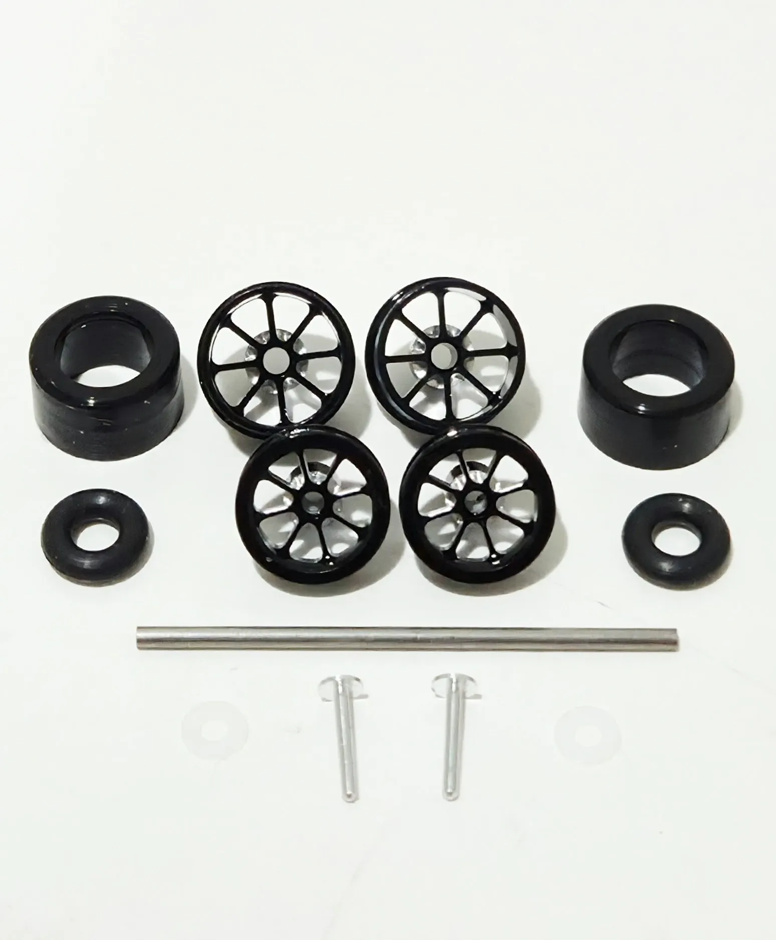 The all-new Viper Billet Wheel Sets are designed for performance-driven enthusiasts who want style, precision, and durability. Machined from high-quality billet material, these wheels deliver the strength and balance needed to get the most out of your inline slot car setup. These kits are specifically designed to work on the Viper V platform but can also be used on other inlines such as the AFX Mega G+, Tyco 440X2, Tomy Super G+, and more. Note: Rear rims are slip fit on .059″ axle and require red thread locker Part #2276. Installation video CLICK HERE